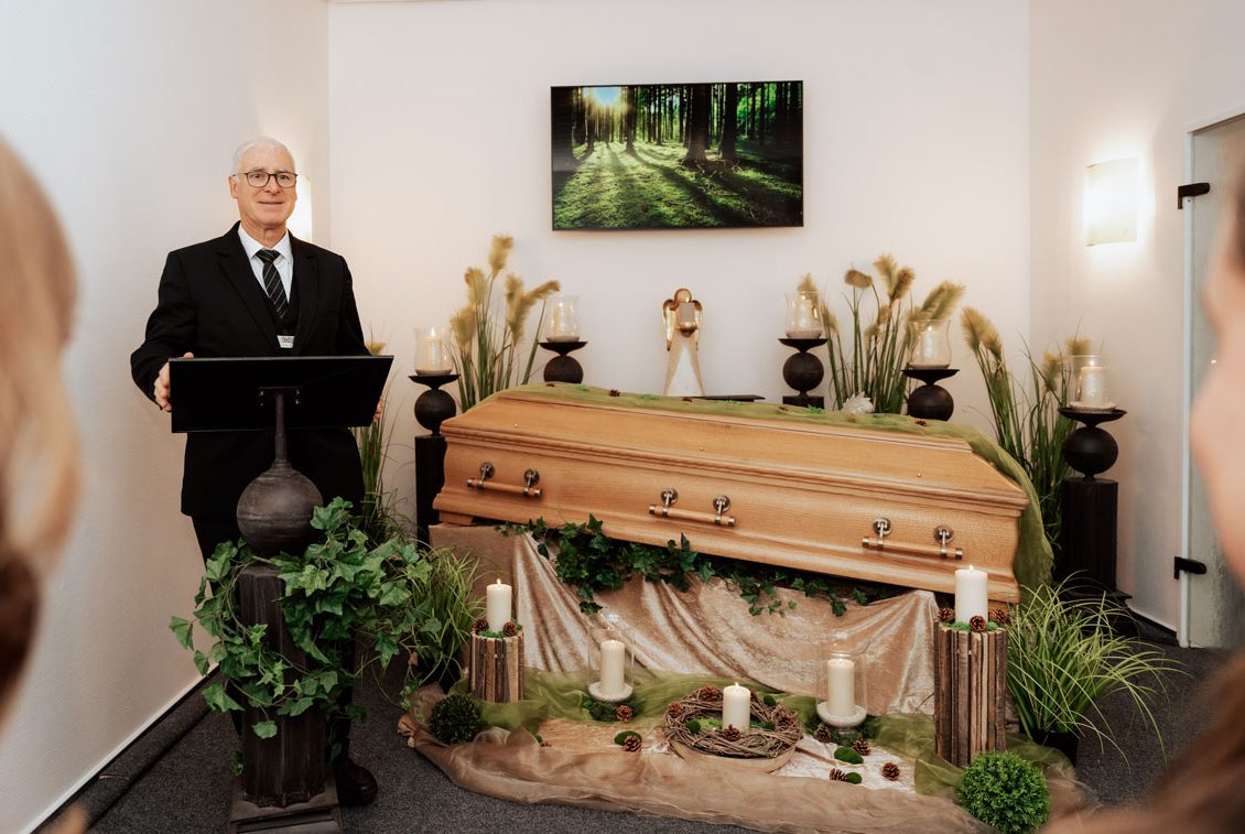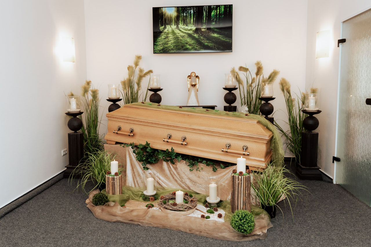 Persönliche Abschiednahmen am offenen Sarg sind bei uns in ungestörter Atmosphäre ohne Zeitdruck möglich. Flexible Termine, auch am Wochenende, sichern wir Ihnen zu.